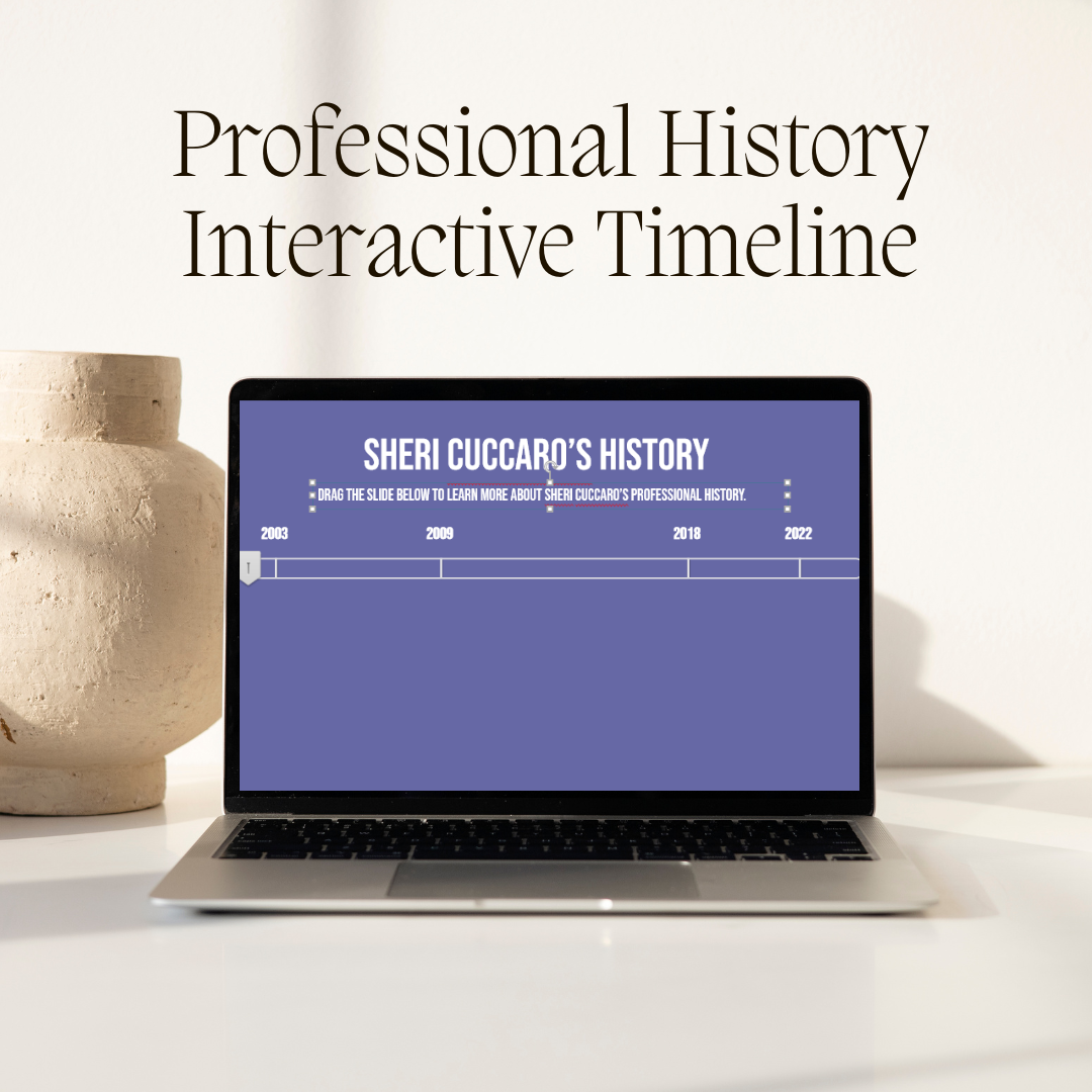 I developed this interactive timeline in Articulate Storyline, using currently popular colors and fonts. I used a series of variables and conditions that reveal the various layers as the user moves the slider.